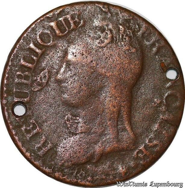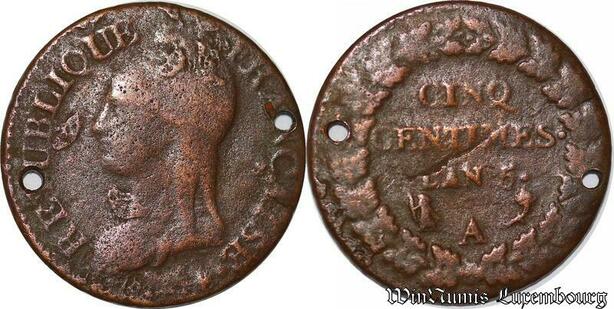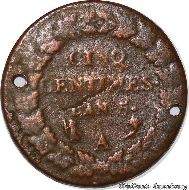 S3697 Rare France 5 Centimes Dupré Grand module Refrappe Decime An 5 A Paris
