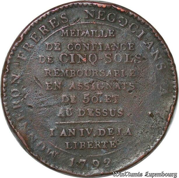 S3706 France Révolution Monneron 5 Sols Vivre Libres Ou Mourir An IV 1792 Dupré
