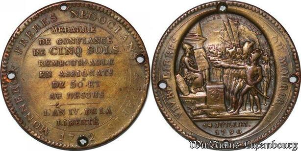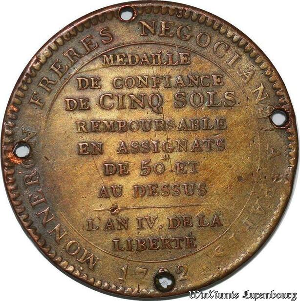 S3708 France Revolution Monneron 5 Sols Vivre Libres Ou Mourir An IV 1792 Dupré
