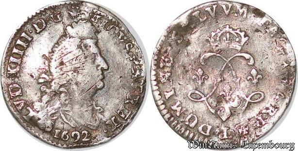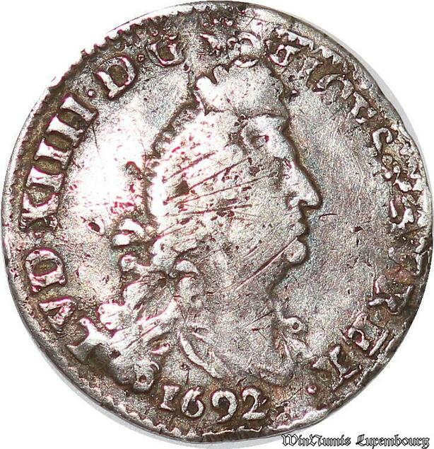 S3711 France 4 Sols 2 Deniers Louis XIV quadruple 1692 L Bayonne Argent Silver