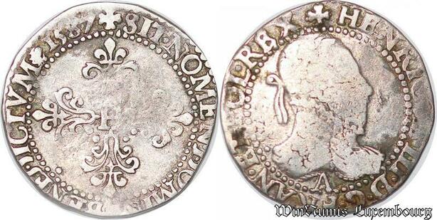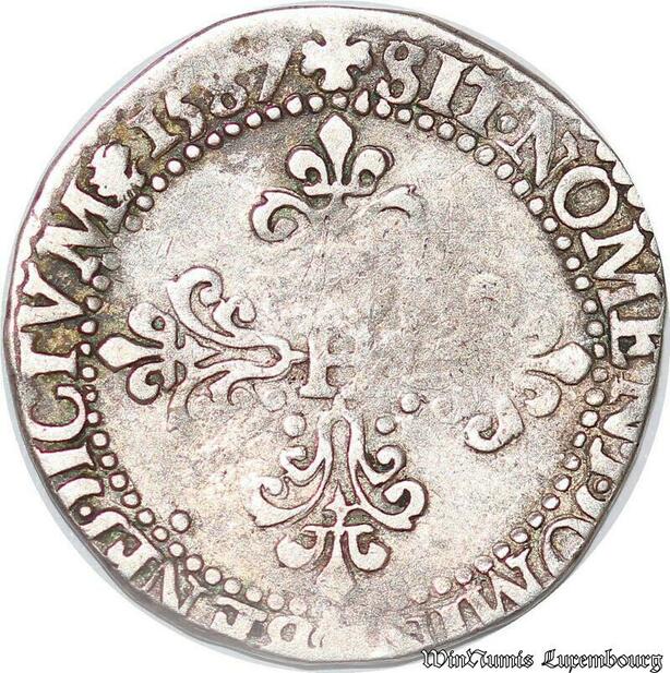 S3720 Rare France Demi-Franc au col plat Henri III AR1587 Argent Silver ->Faire Offre