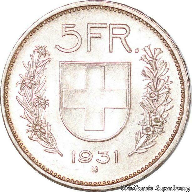 S3726 Suisse 5 Francs Confédération Helvétique 1931 B Berne SPL Argent Silver
