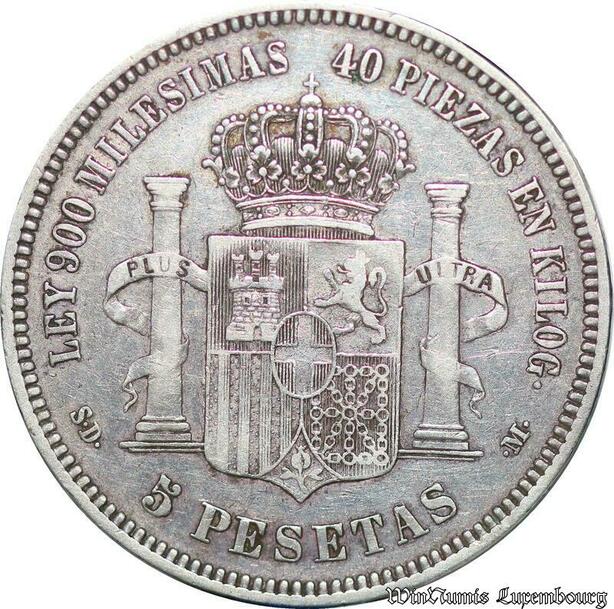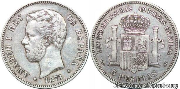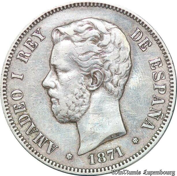 S3733 Rare Espagne 5 Pesetas Amadeo I REY 1871 * 1871 Argent Silver
