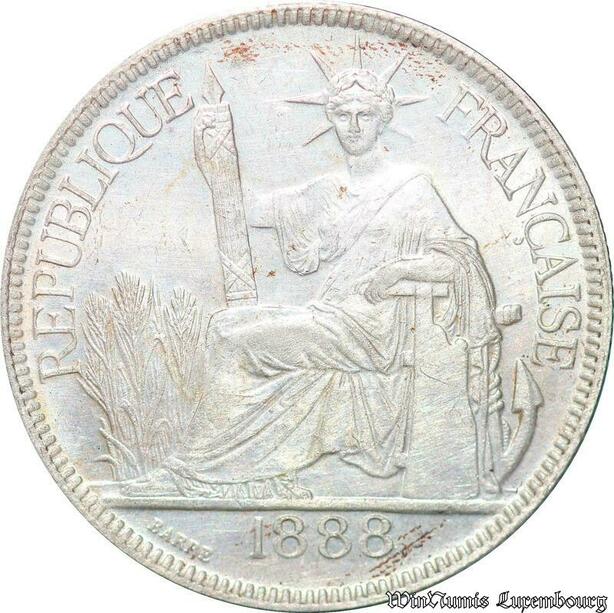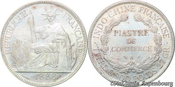 S3742 Old Counterfeit French Indochina Piastre de Commerce 1888 A Paris Silver