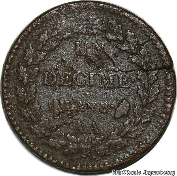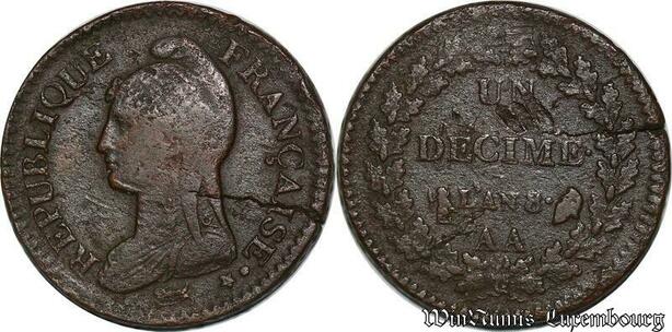 S3793 Très Rare ! Inédit France Un Décime Dupré An 8/6 AA Metz - Faire Offre