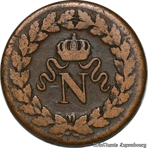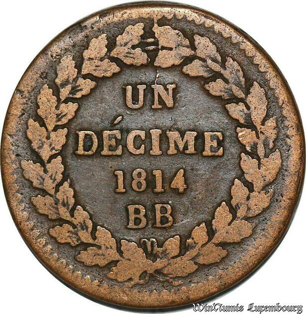S3794 Rare France Un décime Napoléon Ier N couronnée Lourd Coin choqué 1814 BB Strasbourg