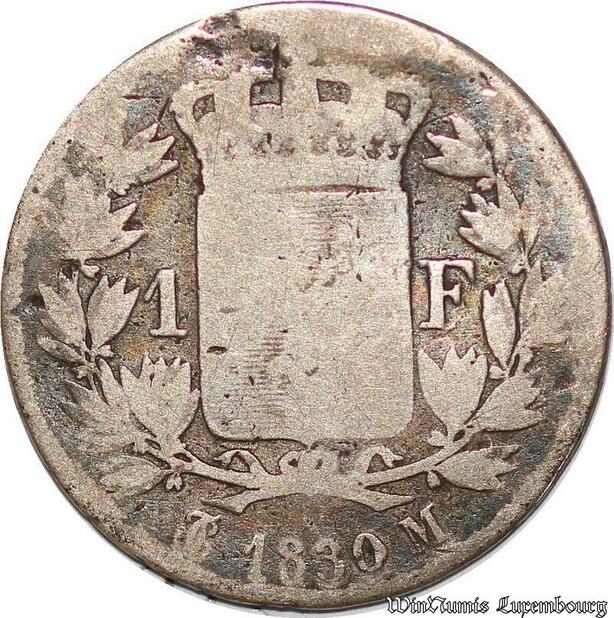 S3798 France 1 Franc Charles X Matrice du Revers à Quatre Feuilles 1830 M Toulouse Argent