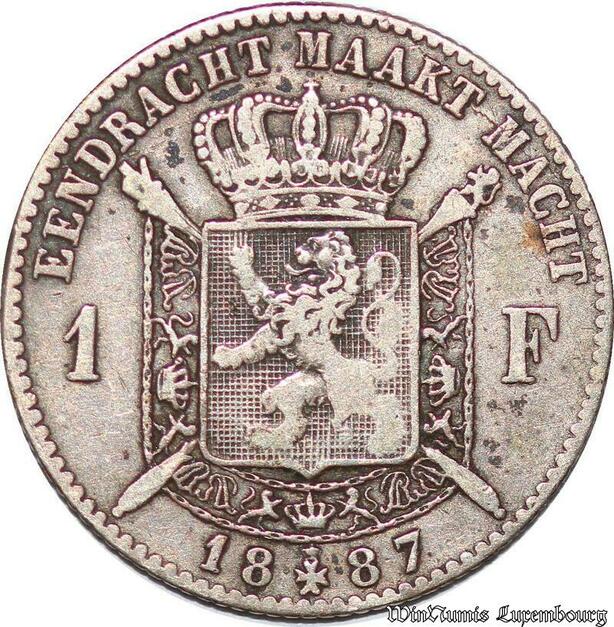 S3836 Belgium 1 Franc Léopold II type Wiener en néerlandais 1887 ->Make offer
