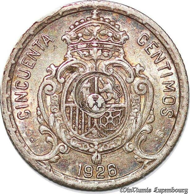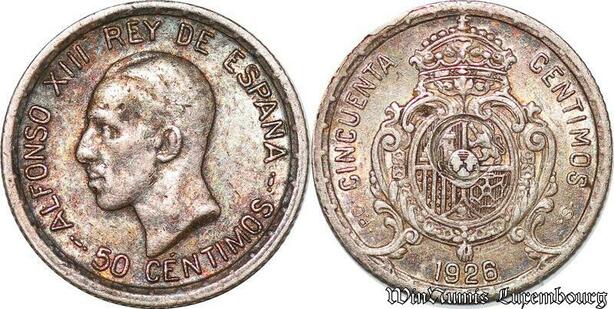 S3840 Espagne 50 Centimos Alphonse XIII Sevilla 1926 Argent Silver - F Offre