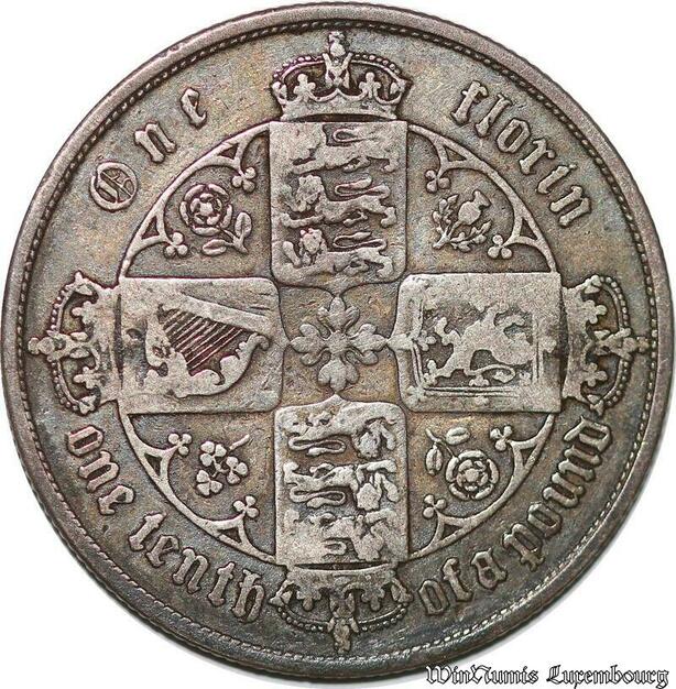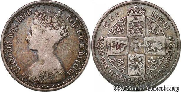 S3843 Rare United Kingdom One Florin Victoria 1856 Argent Silver -> Make offer