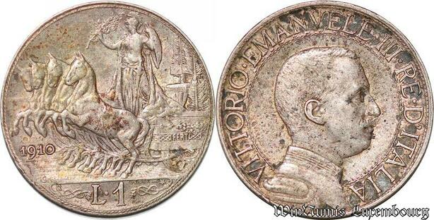 S3853 Italy 1 Lire Lira Vittorio Emanuele III 1910 R Rome Argent Silver