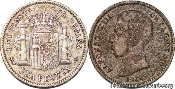 S3858 Espagne 1 Peseta Alphonse XIII 1904 SM V Argent Silver - Faire Offre
