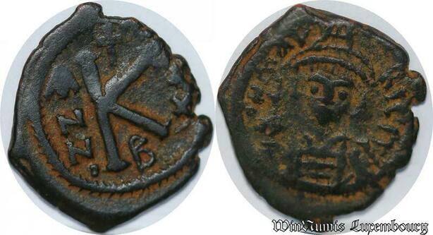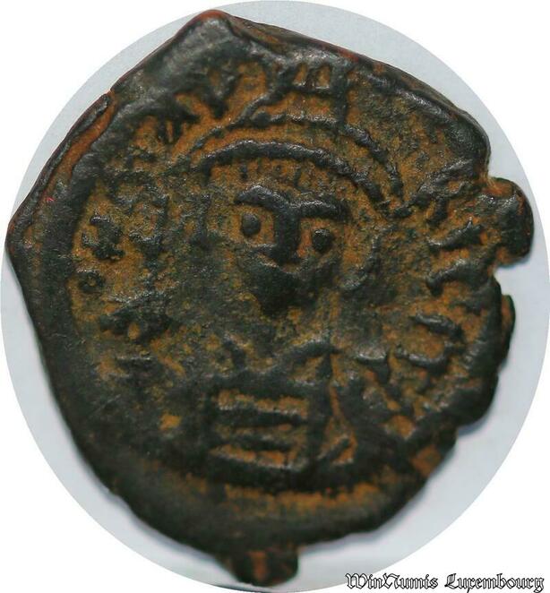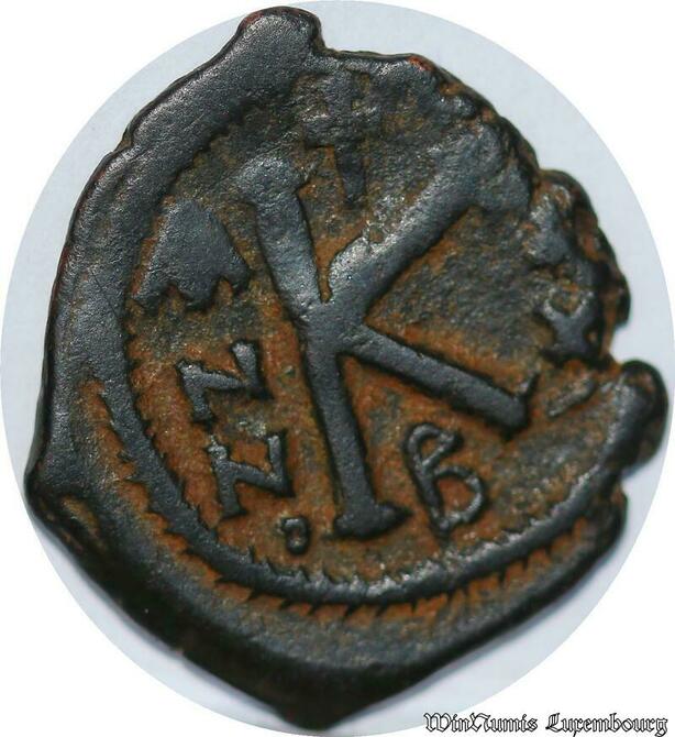 S3947 Demi Follis Justinien I de Face K couronne de laurI 482-565 B