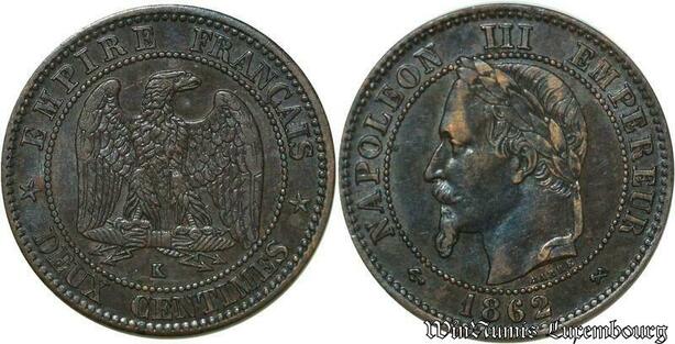 S46 France 2 Centimes Napoléon I Tête Laurée 1862 K Bordeaux -> Faire Offre