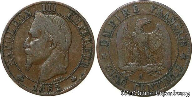 S87 France 5 Centimes Napoléon III Tête Laurée 1862 A Paris -> Faire Offre