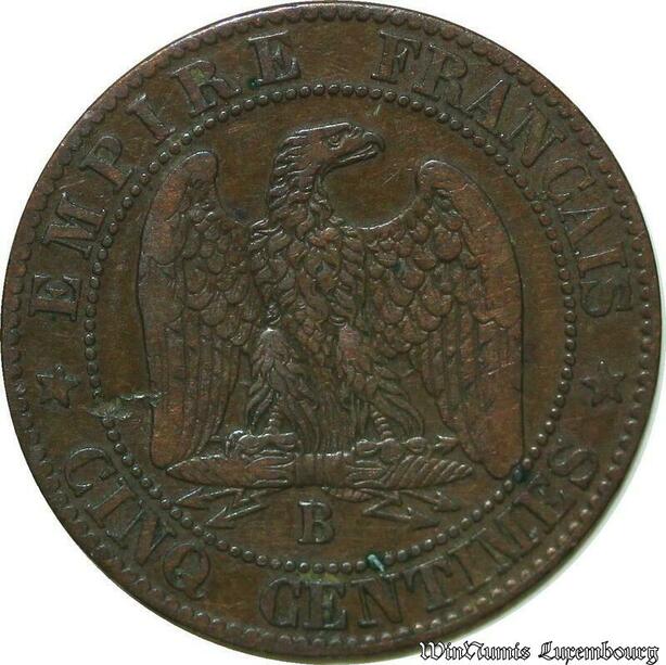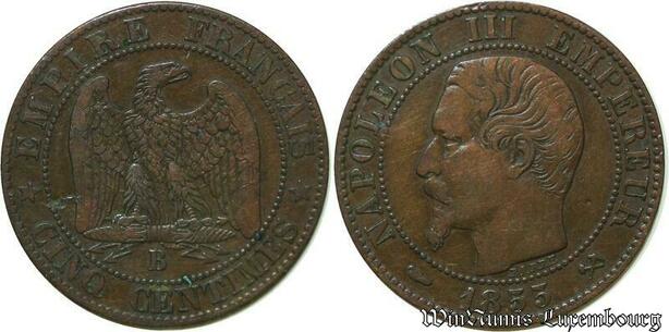 S91 France 5 Centimes Napoléon III Tête Nue 1855 B Rouen -> Faire Offre