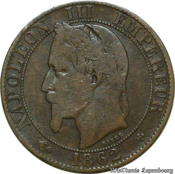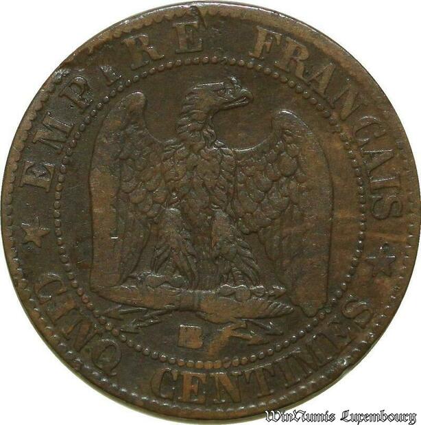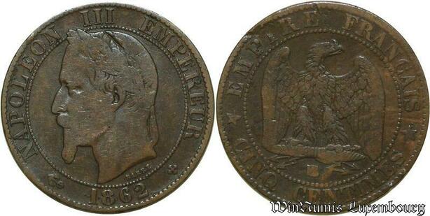 S93 France 5 Centimes Napoléon III Tête Laurée 1862 BB Strasbourg -> Faire Offre
