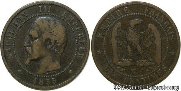 S101 France 10 Centimes Napoléon I Tête Nue 1855 MA Marseille -> Faire Offre