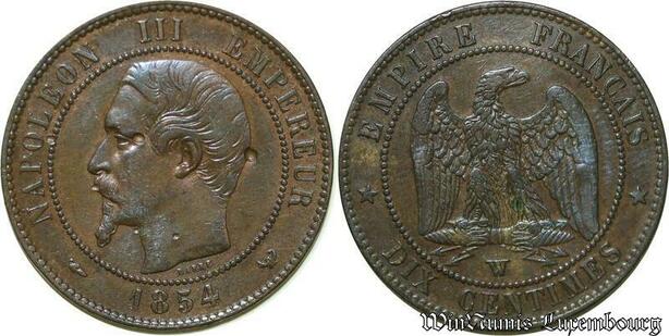 S103 France 10 Centimes Napoléon I Tête Nue 1854 W Lille -> Faire Offre