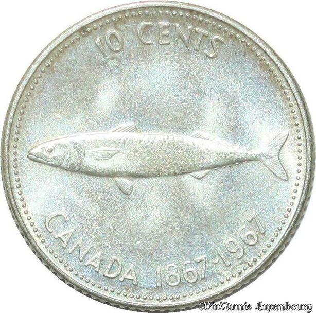 S180 Canada 10 Cents Elizabeth II Fish 1967 AU Silver -> Faire Offre