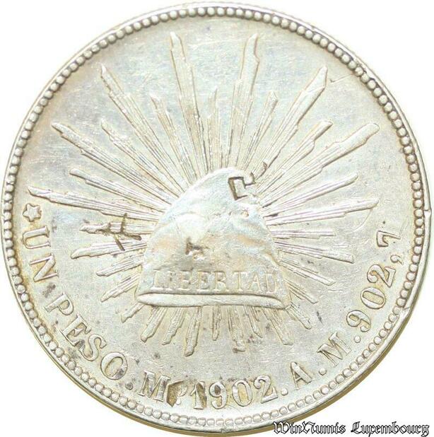 S222 Mexico Peso 1902 OM AM Mexico City Chinese Chopmark Silver