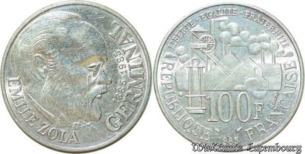 S347 France 100 Francs Germinal Emile Zola 1985 Argent Silver SUP -> Faire Offre