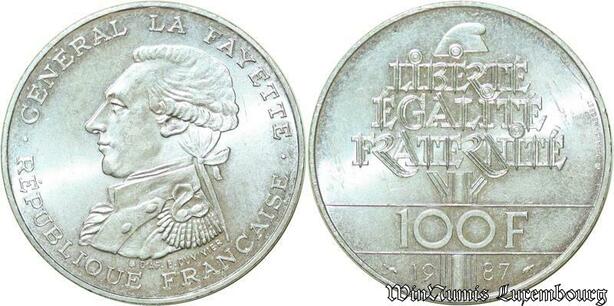 S348 France 100 Francs Général La Fayette 1987 Argent Silver FDC -> Faire Offre
