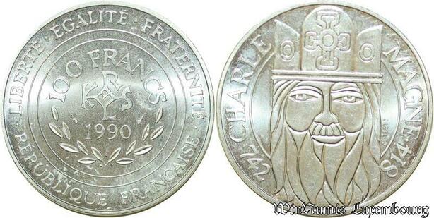 S354 France 100 Francs Charlemagne 1990 Argent Silver FDC -> Faire Offre