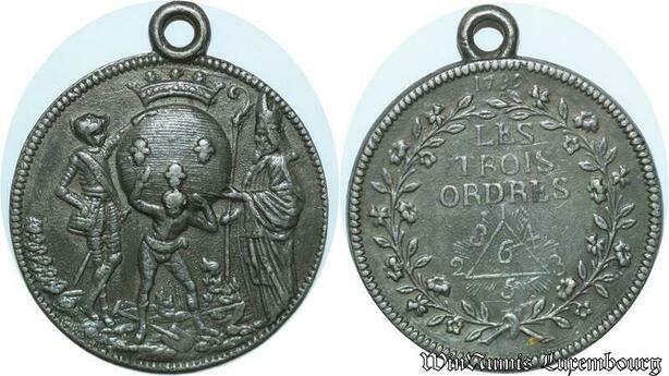 S418 France Très Rare Révolution Médaille populaire réunion Les 3 ordres 1789 TTB