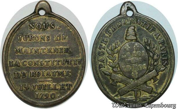S419 France Très Rare Constitution Médaille Pacte fédératif 14 juillet 1790 Paris