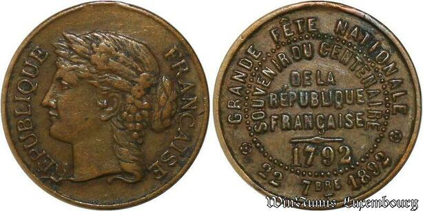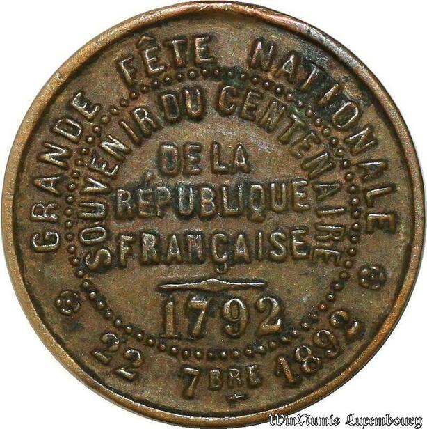 S453 France Médaille Grande Fête Nationale Centenaire 1792 1892 - > Faire Offre