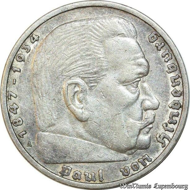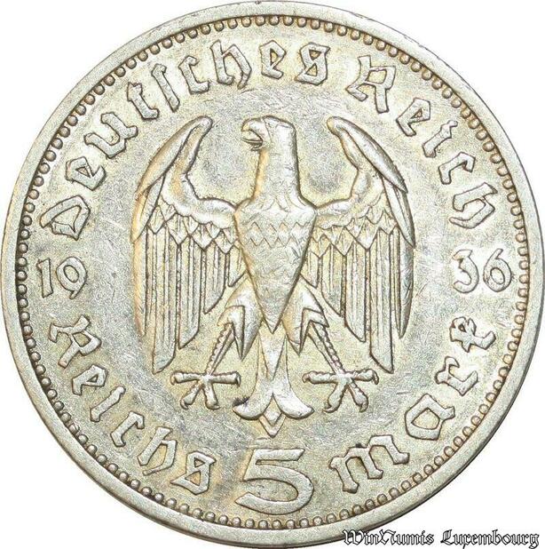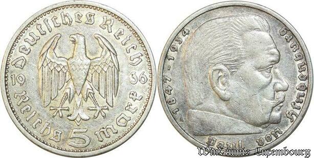 S456 Allemagne 5 Marks Von Hinbenburg 1936 Argent Silver - Make Offer