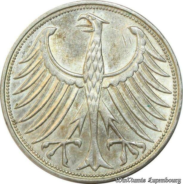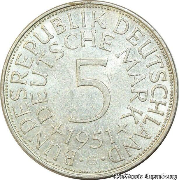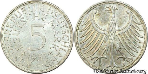 S459 Allemagne 5 Mark G Mannheim 1951 G Karlsruhe Silver