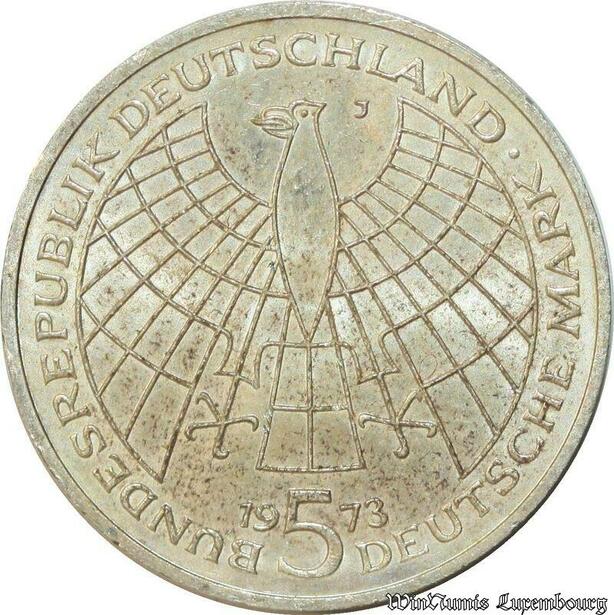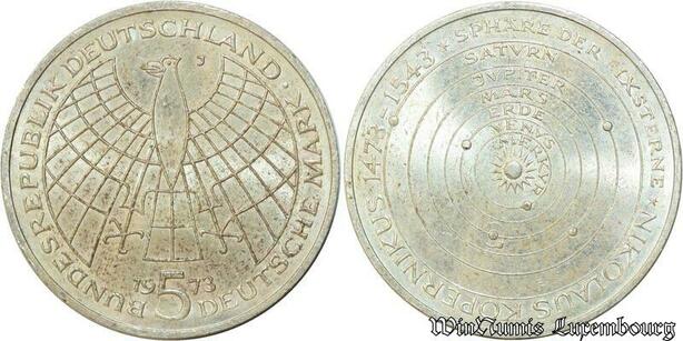 S462 Allemagne 5 Mark Nicolaus Copernicus 1973 J Hambourg Argent Silver FDC