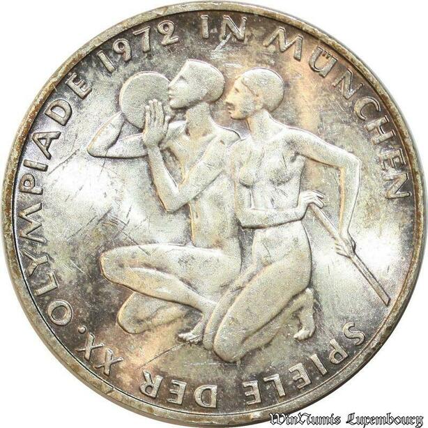S465 Allemagne 10 Mark Olympiades Munich G Mannheim 1972 Silver FDC