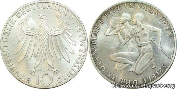 S466 Allemagne 10 Mark Olympiades Munich J Hambourg 1972 Silver SPL