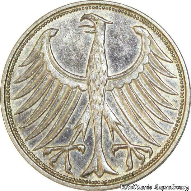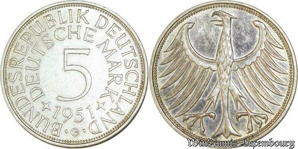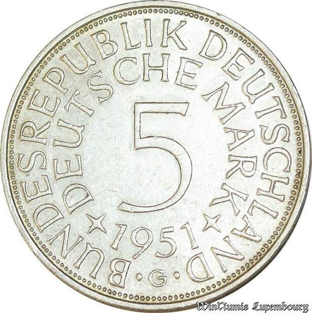 S475 Allemagne 5 Mark 1951 G Mannheim Argent Silver