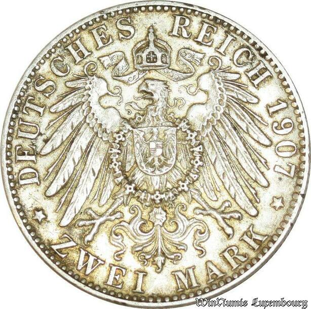 S480 Allemagne 2 Mark Otto Koenig Von Bayern D Munich 1907 Argent Silver