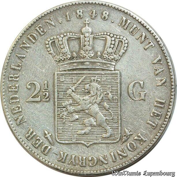 S497 Rare Netherlands 2 1/2 Gulden Willem II 1848 Argent Silver -> Offre