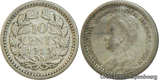 S499 Netherlands 10 Cents Wilhelmina 1919 Argent Silver -> Faire Offre