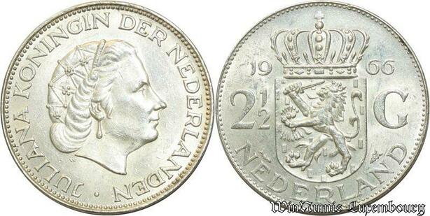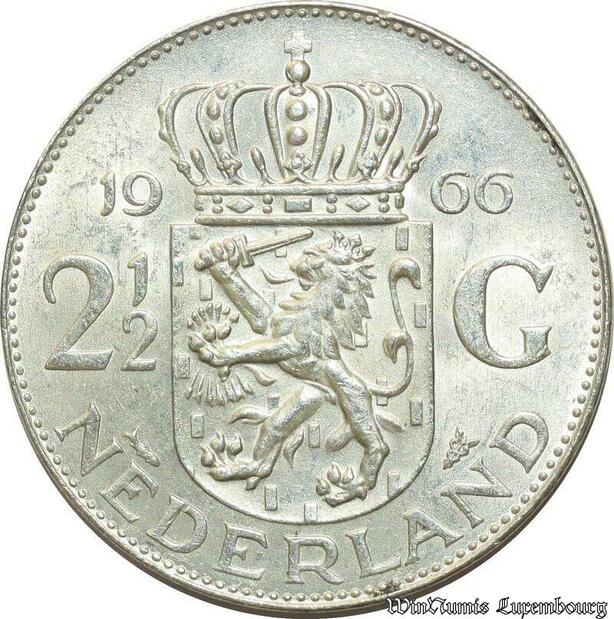 S504 Netherlands 2 1/2 Gulden Juliana 1966 Argent Silver -> Faire Offre