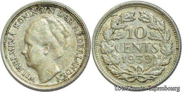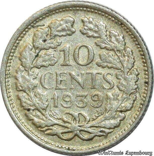 S505 Netherlands 10 Cents Wilhelmina 1939 Argent Silver -> Faire Offre