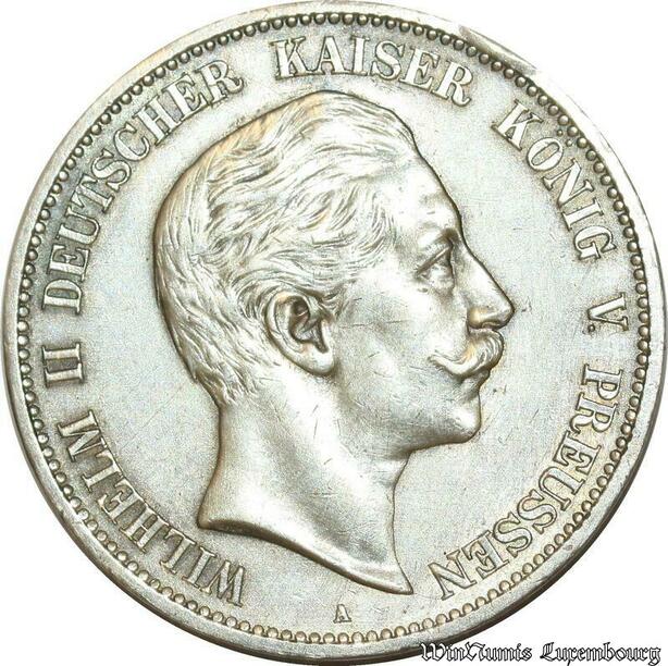 S518 Germany Prusse 5 Mark Guillaume II 1907 A Berlin Argent Silver AU