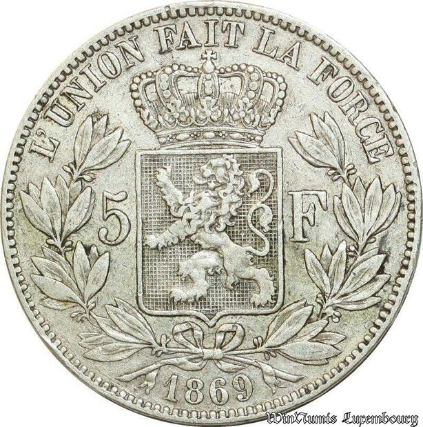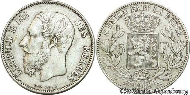 S534 Belgium 5 Francs Léopold II 1869 Argent Silver -> Faire Offre