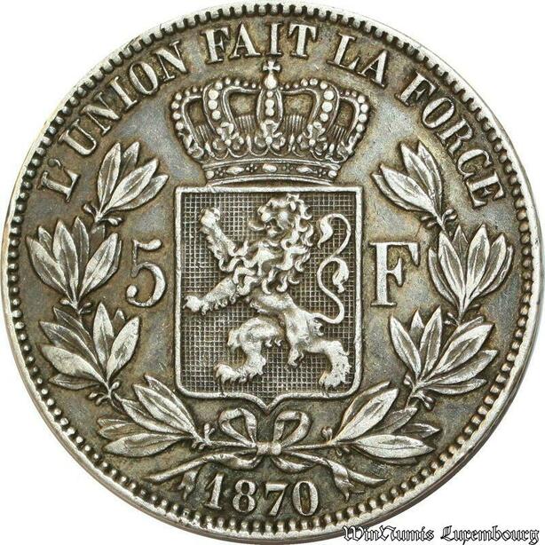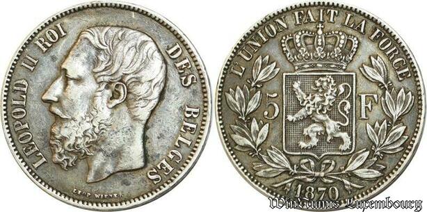 S537 Belgium 5 Francs Léopold II 1870 Argent Silver -> Faire Offre