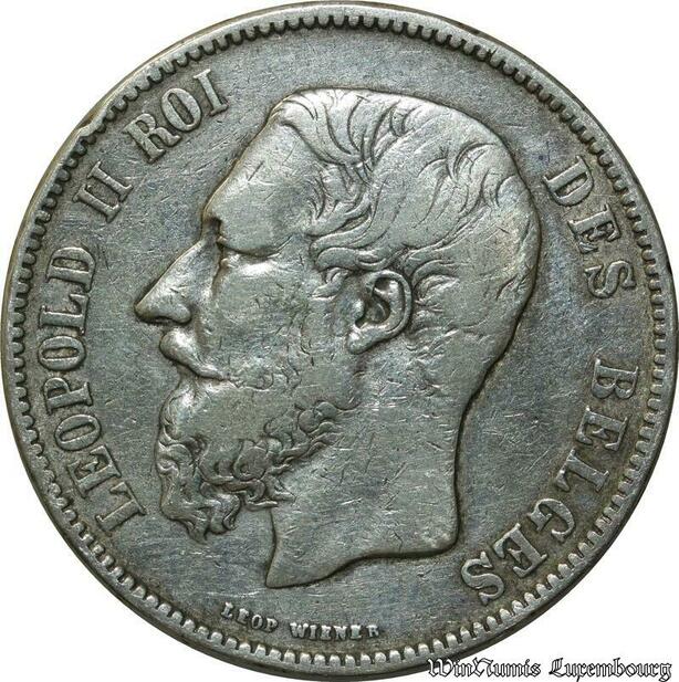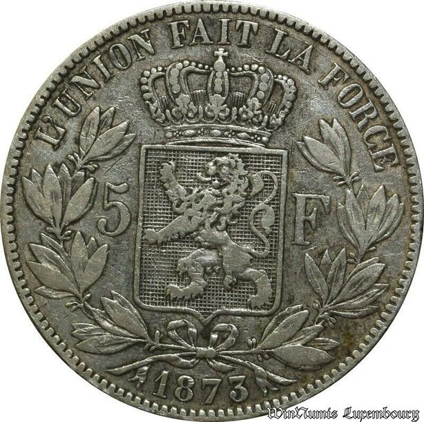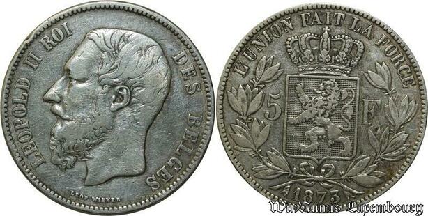 S538 Belgium 5 Francs Léopold II 1873 Argent Silver -> Faire Offre