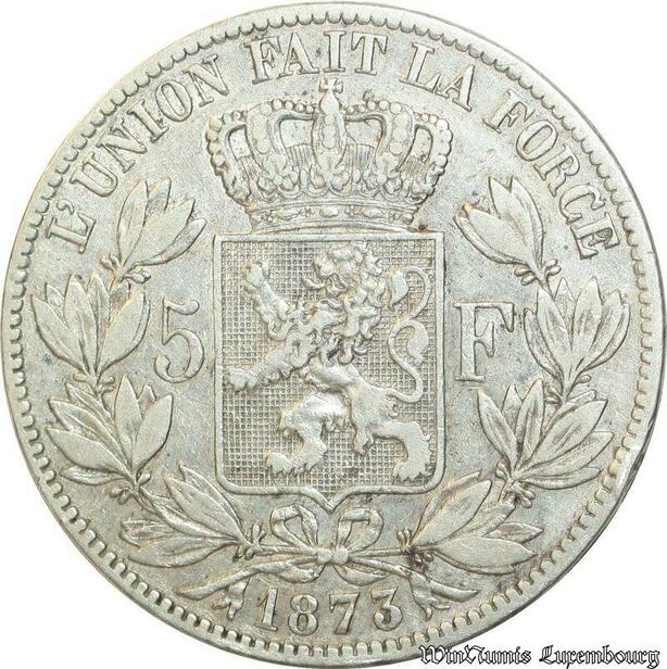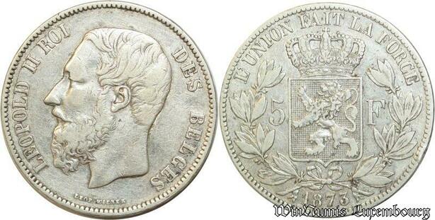 S539 Belgium 5 Francs Léopold II 1873 Argent Silver -> Faire Offre