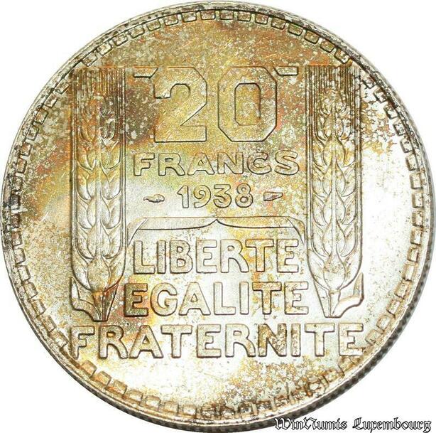 S556 France 20 Francs Turin 1938 Argent Silver FDC -> Faire Offre