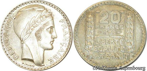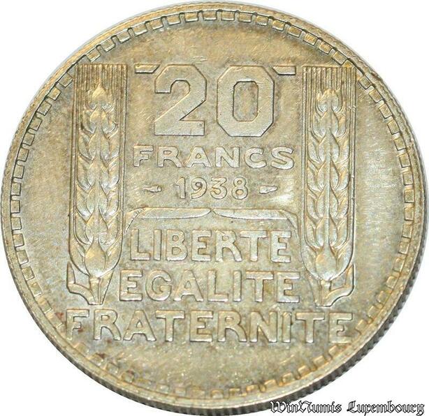S557 France 20 Francs Turin 1938 Argent Silver SUP -> Faire Offre