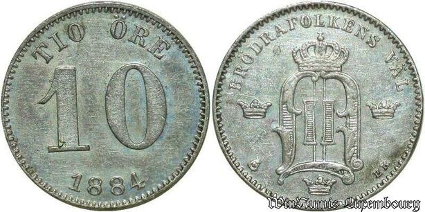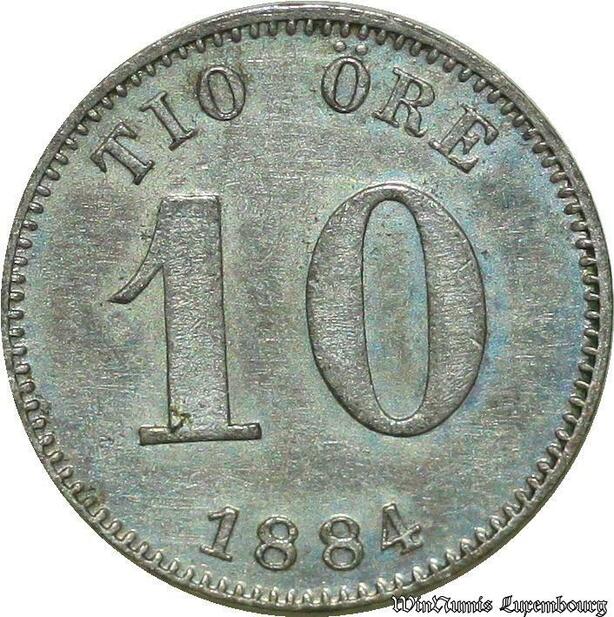 S593 Sweden 10 Ore Oskar II 1884 1872-1907 Silver -> Make offer